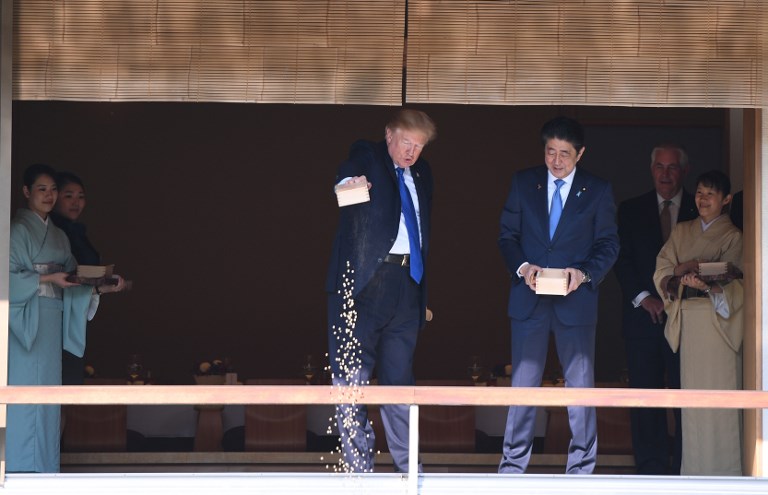 Trump lashed out at the US trade relationship with Japan, saying it was “not fair and open”, as he prepared for formal talks with his Japanese counterpart. / AFP PHOTO / TORU HANAI