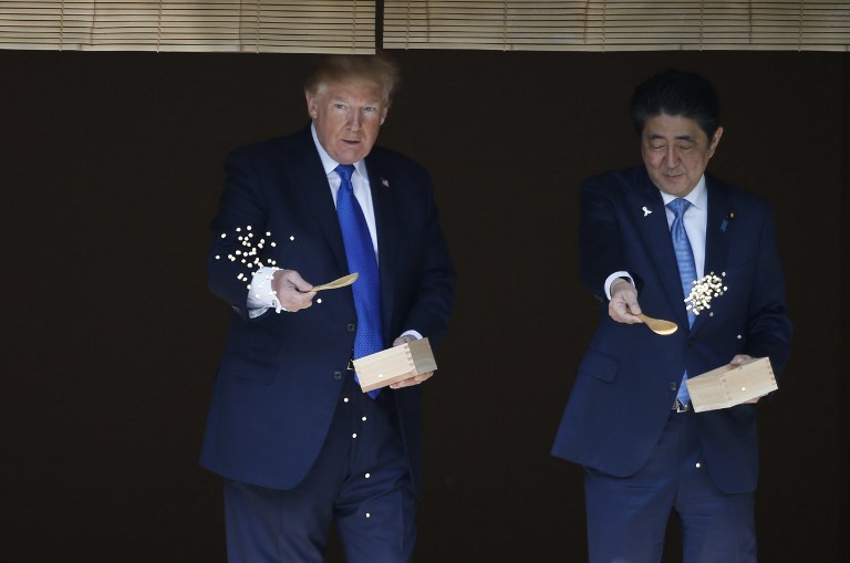 Trump lashed out at the US trade relationship with Japan, saying it was “not fair and open”, as he prepared for formal talks with his Japanese counterpart. / AFP PHOTO / JIM WATSON