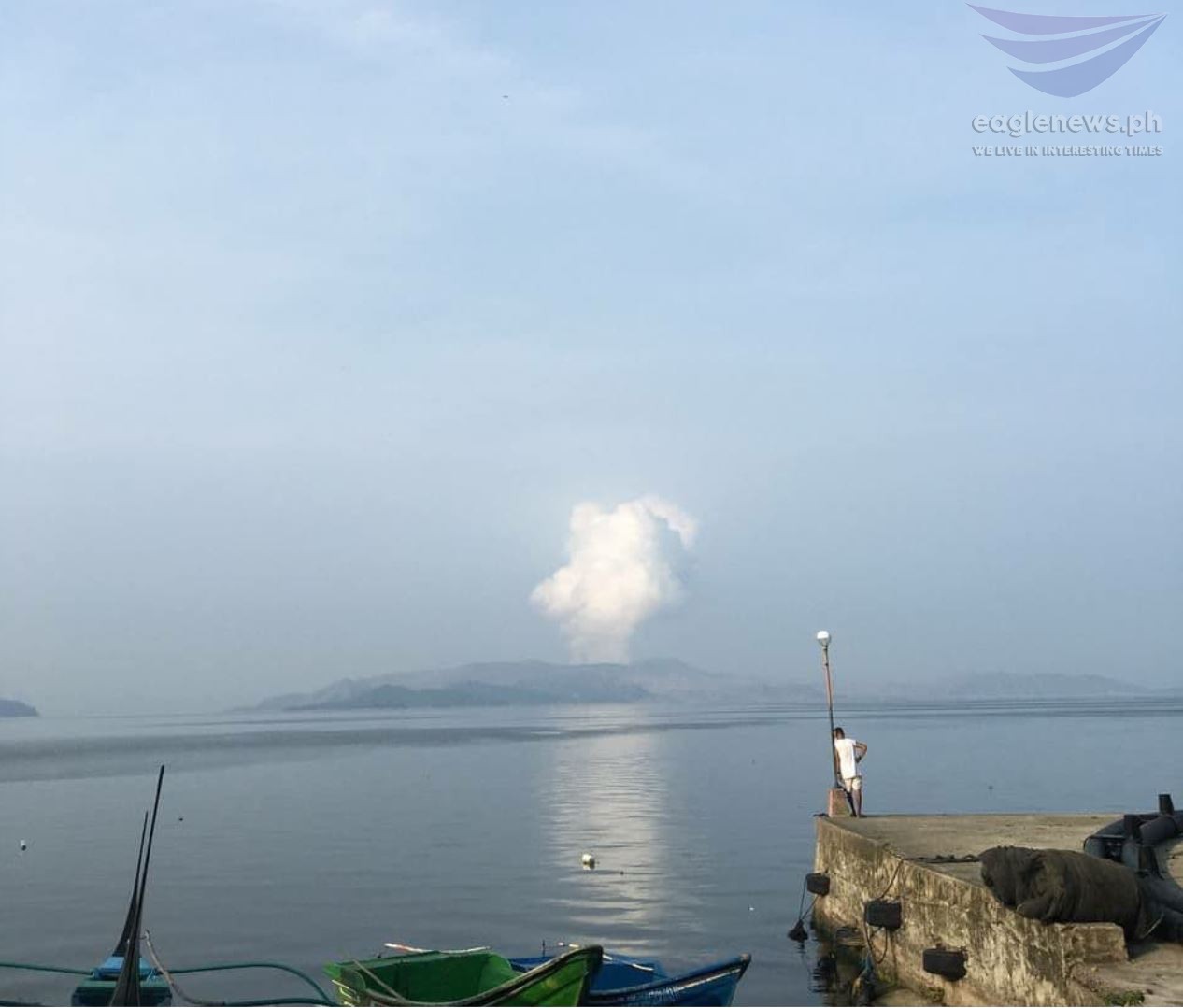 These photos taken in the morning of July 2, 2021 show plumes of white smoke continuing to billow above the Taal Volcano indicating continuous volcanic activity.