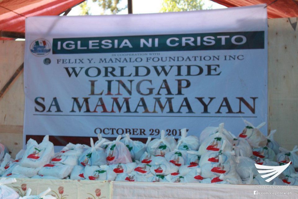 Residents in Bukidnon received bags containing packs of noodles, rice, and canned goods on Oct. 29, 2017, as part of the Worldwide Lingap sa Mamamayan.