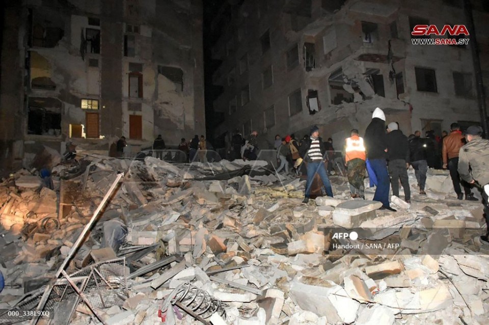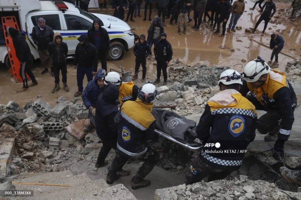 Members of the Syrian civil defence, known as the White Helmets look for casualties under the rubble following an earthquake in the town of Zardana in the countryside of the northwestern Syrian Idlib province, early on February 6, 2023. (Photo by Mohammed AL-RIFAI / AFP)Victims are rushed to the emergency ward of the Bab al-Hawa hospital following an earthquake, in the rebel-held northern countryside of Syria’s Idlib province on the border with Turkey, early on February 6, 2023. (Photo by Aaref WATAD / AFP)Syrian rescuers (White Helmets) and civilians search for victims and survivors amid the rubble of a collapsed building following an earthquake, in the rebel-held northern countryside of Syria’s Idlib province on the border with Turkey, early on February 6, 2023, (Photo by Aaref WATAD / AFP)Members of the Syrian civil defence, known as the White Helmets transport a casualty pulled from the rubble following an earthquake in the town of Zardana in the countryside of the northwestern Syrian Idlib province, early on February 6, 2023. (Photo by Abdulaziz KETAZ / AFP)In this handout photo taken by Sana news agency in Hama, Syria on February 6, 2023, rescuers search for victims from an eight-storey building that collapsed after an 7.8-magnitude earthquake in southern Turkey. (Photo by Handout / SANA / AFP) / == RESTRICTED TO EDITORIAL USE – MANDATORY CREDIT “AFP PHOTO / HO / SANA” – NO MARKETING NO ADVERTISING CAMPAIGNS – DISTRIBUTED AS A SERVICE TO CLIENTS ==People gather around collapsed buildings as rescue teams look for survivors following an earthquake in the government-held Syrian city of Aleppo on February 6, 2023. – A 7.8-magnitude earthquake hit Turkey and Syria on February 6, killing hundreds of people as they slept, levelling buildings, and sending tremors that were felt as far away as the island of Cyprus and Egypt. (Photo by AFP)Soldiers walk as people search for survivors through the rubble in Diyarbakir, on February 6, 2023, after a 7.8-magnitude earthquake struck the country’s south-east. – At least 284 people died in Turkey and more than 2,300 people were injured in one of Turkey’s biggest quakes in at least a century, as search and rescue work continue in several major cities. (Photo by ILYAS AKENGIN / AFP)Onlookers watch as rescue teams look for survivors under the rubble of a collapsed building after an earthquake in the regime-controlled northern Syrian city of Aleppo on February 6, 2023. – A 7.8-magnitude earthquake hit Turkey and Syria early on February 6, killing hundreds of people as they slept, levelling buildings and sending tremors that were felt as far away as the island of Cyprus, Egypt and Iraq. (Photo by AFP)
