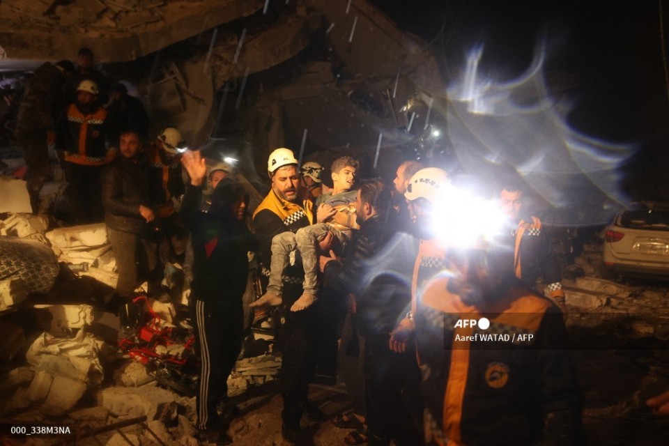 Rescue workers carry a boy they recovered from the rubbles of a building after an earthquake in Dana, rebel-held Idlib, early on February 6, 2023. (Photo by Aaref WATAD / AFP)Members of the Syrian civil defence, known as the White Helmets search for survivors under the rubble following an earthquake in the town of Zardana in the countryside of the northwestern Syrian Idlib province, early on February 6, 2023. (Photo by Mohammed AL-RIFAI / AFP)Residents gather in front of the rubble of a building that collapsed, following an earthquake in the village of Azmarin, near the Turkish border in the north of Syria’s rebel-held northwestern Idlib province, early on February 6, 2023. (Photo by OMAR HAJ KADOUR / AFP)In this video grab from AFP TV taken on February 6, 2023, rescuers search for victims of a 7.8-magnitude earthquake that hit Diyarbakir, in southeastern Turkey, levelling buildings across several cities and causing damages in neighbouring Syria. (Photo by Mahmut BOZARSLAN / AFPTV / AFP)Syrian rescuers (White Helmets) try to retrieve an injured man from the rubble of a collapsed building following an earthquake, in the border town of Azaz in the rebel-held north of the Aleppo province, early on February 6, 2023 (Photo by Bakr ALKASEM / AFP)Rescuers try to free a young boy from the rubble of a collapsed building follwoing an earthquake, in the Syrian border town of Azaz in the rebel-held north of the Aleppo province, early on February 6, 2023 (Photo by Nayef Al-ABOUD / AFP)
