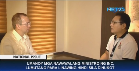 INC ministers Jojo Nemis, Arnel Tumanan, Nolan Olarte, and Lowell Menorca II came out in televised interviews today on NET 25 saying that they are safe and well, and have never ever been kidnapped nor hurt. Another INC minister, Bro, Joel San Pedro also belied reports from critics that he had been expelled from the Church. He said that he was in fact actively involved in the INC’s Unity Games International.