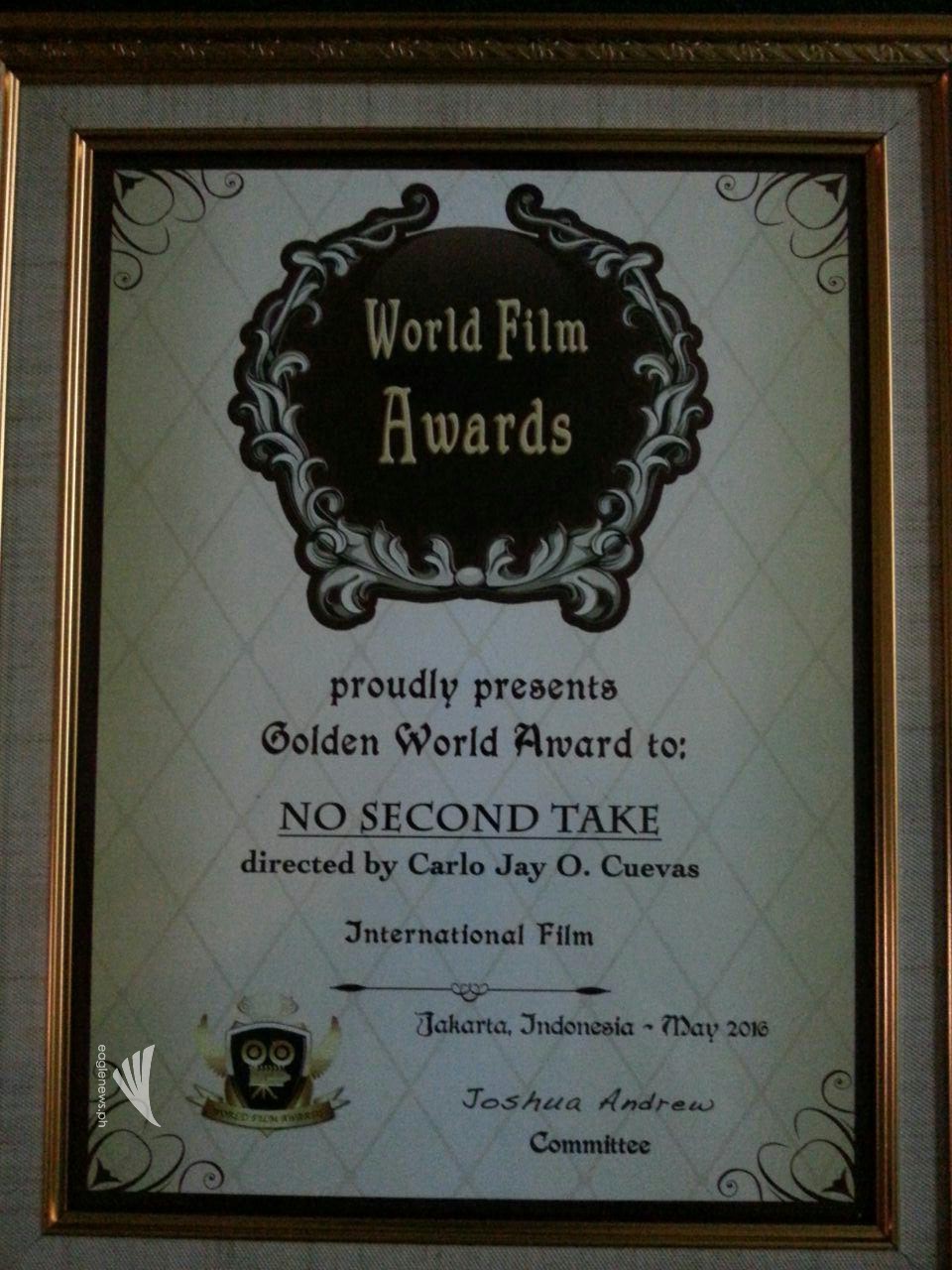 (Eagle News) — The Philippines’ entry from INCinema, “Walang Take Two” has won two major awards from the World Film Awards in Jakarta, Indonesia on Monday night, May 30, during awarding ceremonies that recognized the independent film that had recently gained acclaim from other film festivals in London and Madrid.