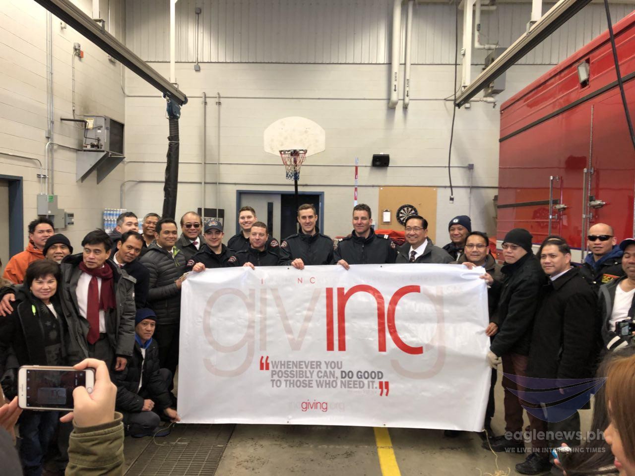 Members of a local fire station in Canada also helped out as the INC members dropped of hundreds of boxes in their station.