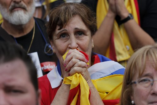 Catalan leaders hold up the unregulated referendum that had been banned by the Constitutional Court as a mandate for independence, saying 90 percent voted “Yes” even if only 43 percent of voters turned out.
