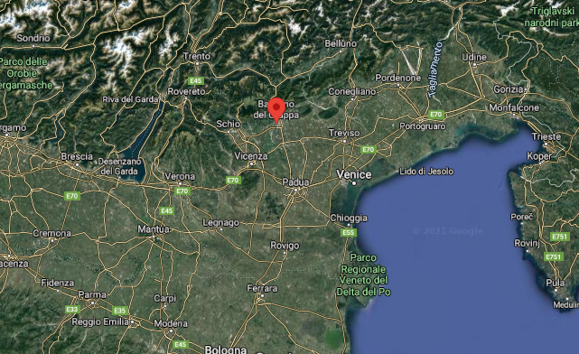 Bassano, in the province of Vicenza, lies some 65 kilometres (40 miles) north-east of Venice.