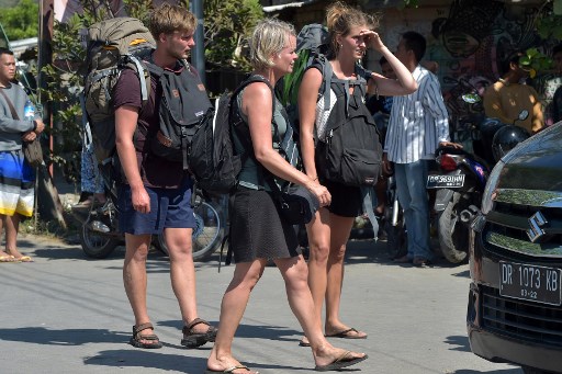 More than 1,000 tourists were being evacuated from Indonesia’s tiny Gili islands on August 6 after a powerful quake struck neighbouring Lombok, killing 91 people and injuring hundreds. / AFP PHOTO / ADEK BERRY