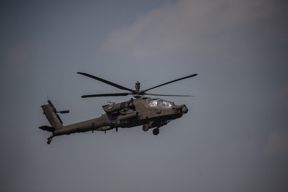Joint military forces fired Javelin anti-tank missiles while Apache helicopters staged manoeuvres, shooting rounds of machine gun fire and rockets into a hilly training area.