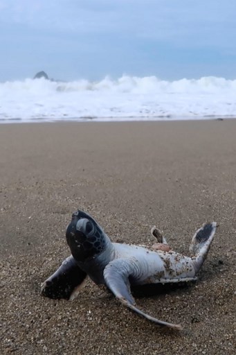 Small enough to fit into the palm of a hand, some ended up on their backs, wriggling their tiny flippers helplessly as they tried to get back on track.
