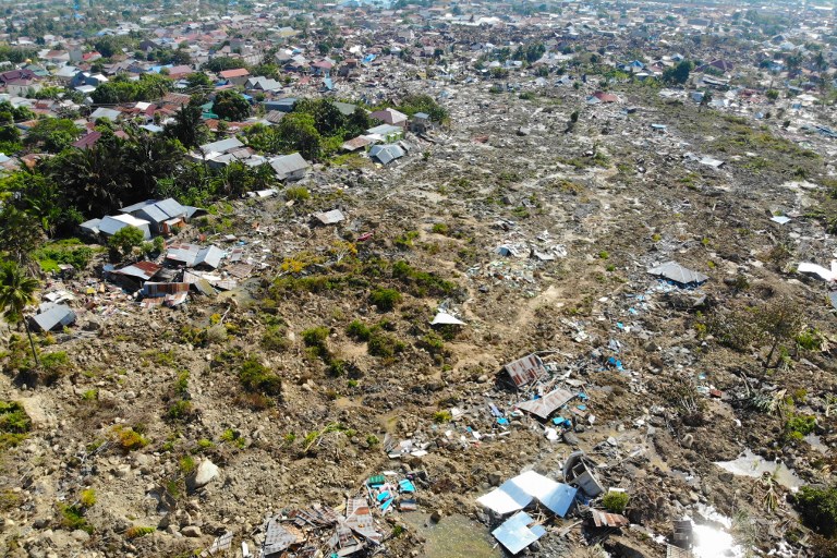 The bodies of dozens of students have been pulled from their landslide-swamped church in Sulawesi, officials said on October 2, as an international effort to help nearly 200,000 Indonesia quake-tsunami victims ground into gear. / AFP PHOTO