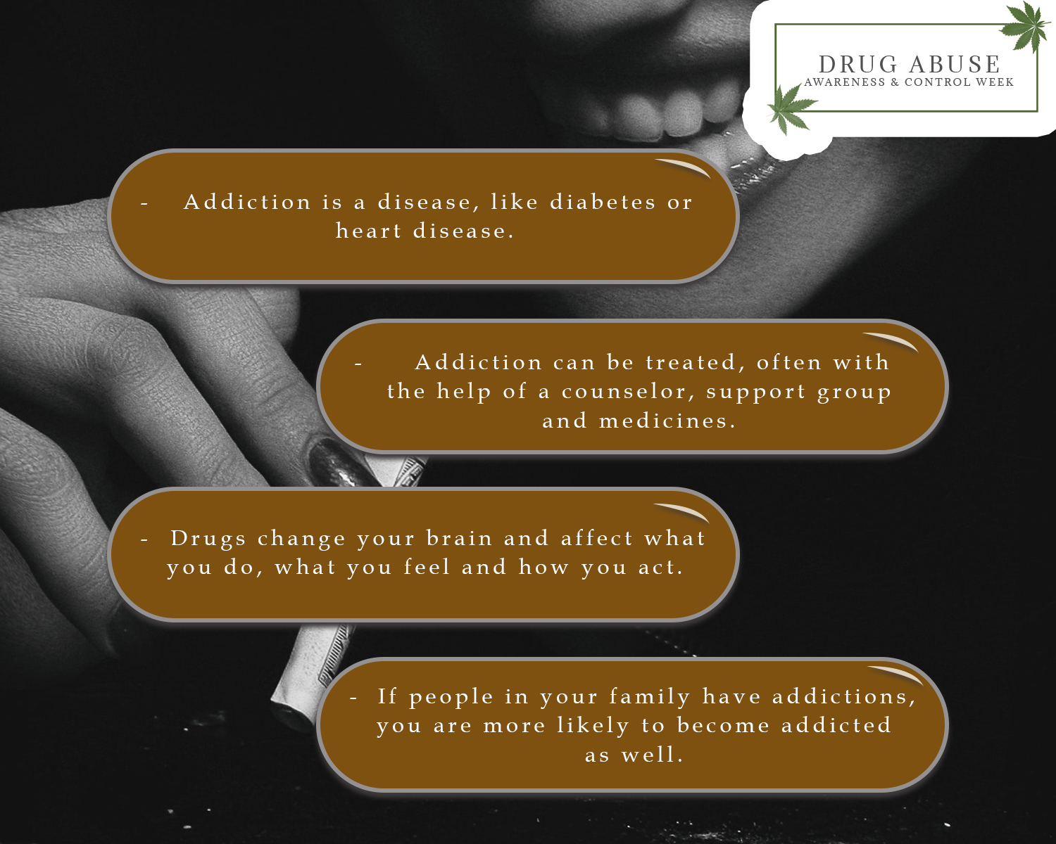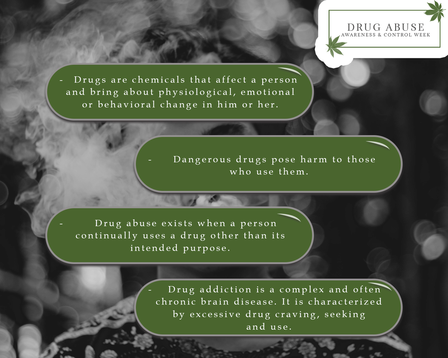 The third week of November is “Drug Abuse Awareness and Control Week.”
