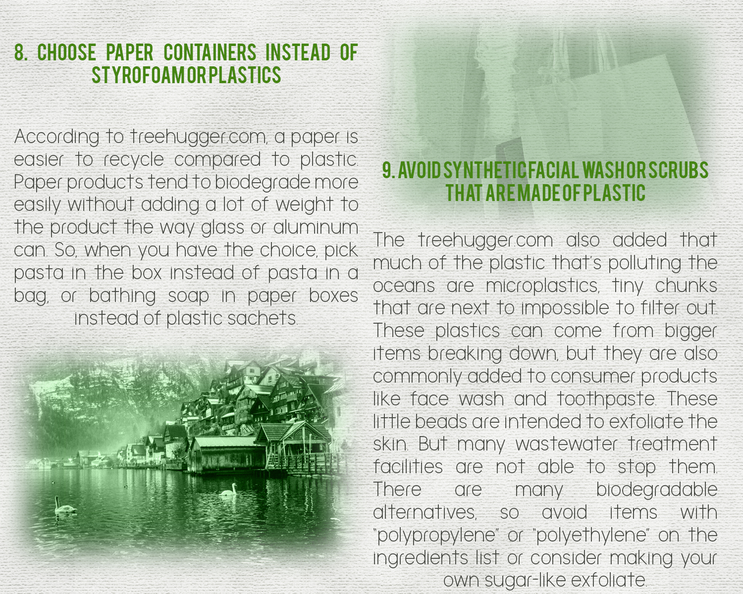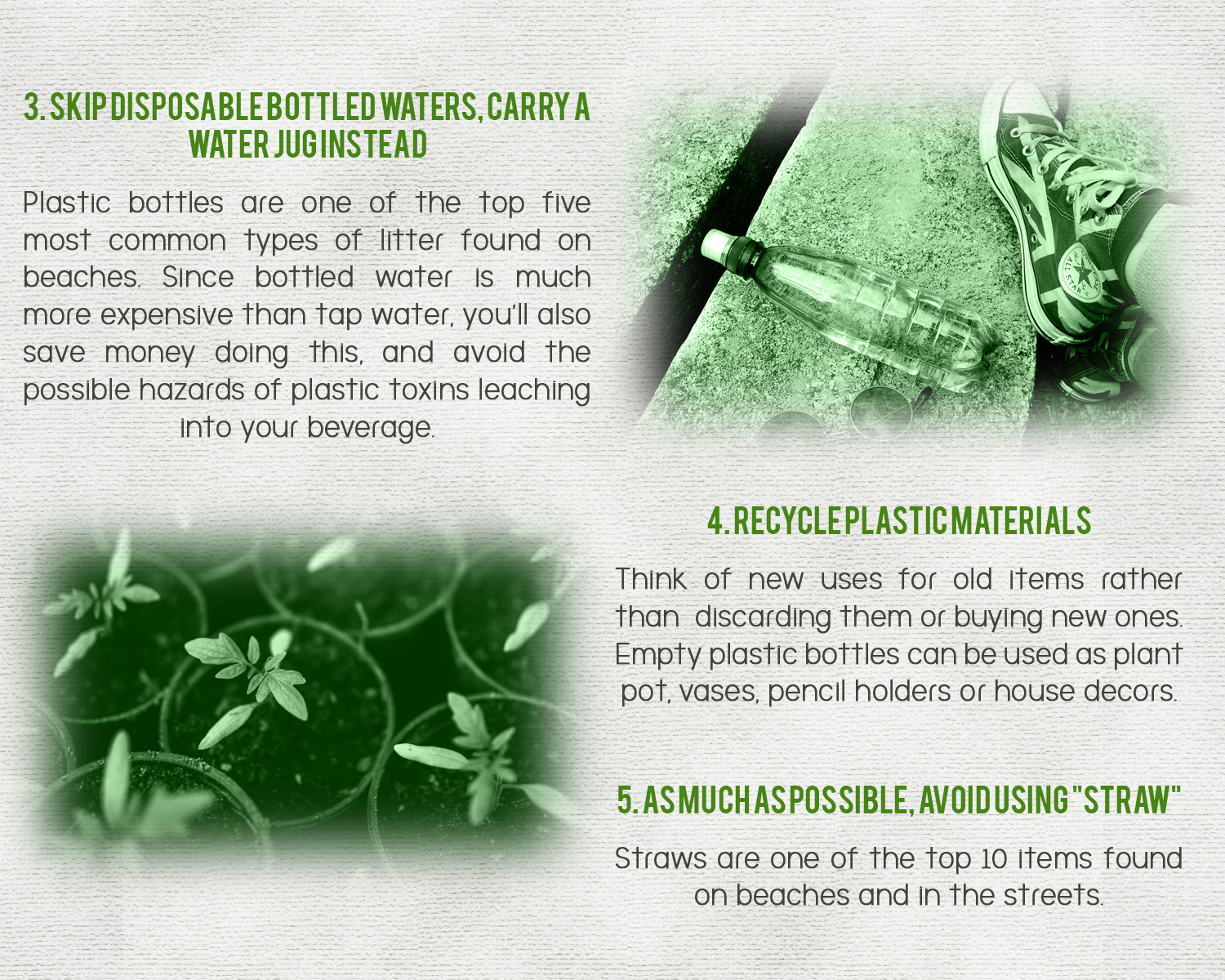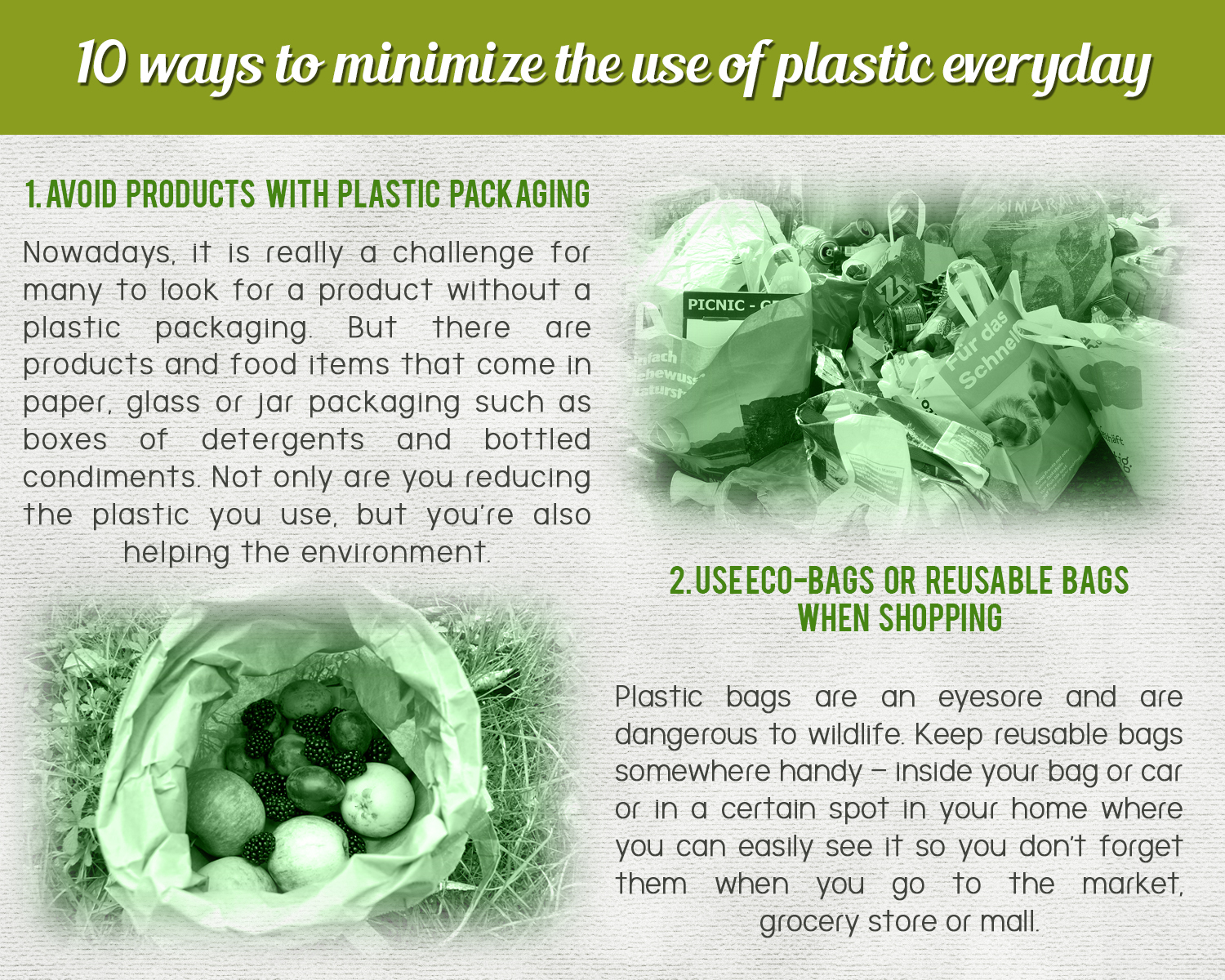 Outlined by the Eco Watch, here are 10 ways to minimize the use of plastic everyday: