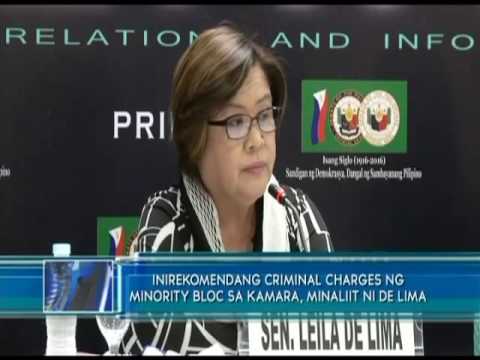 MANILa, Philippines (Eagle News) — Binalewala lang ni Senadora Leila De Lima ang mga kasong inirekomenda ng minority bloc sa Kamara kaugnay ng illegal drug trade sa New Bilibid Prison.