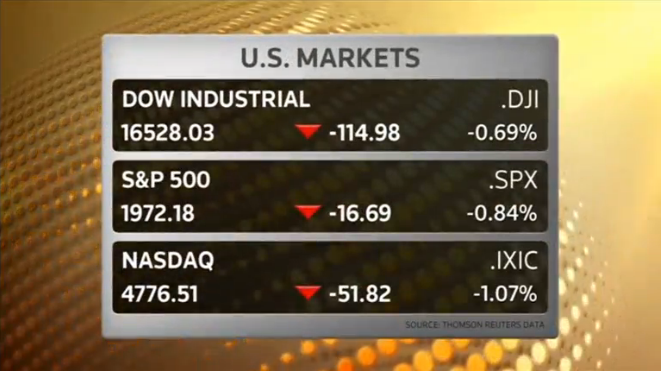 SEPT. 1 (Reuters) — U.S. stocks ended the day lower on worries about China’s economy and the timing of a U.S. interest rate hike.Investors now await new economic reports for signals that might influence the Federal Reserve.