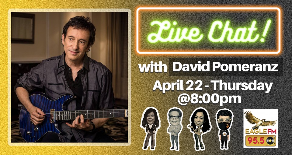 The Live Chat with David Pomeranz will be at 8 PM tonight, April 22, 2021, on Eagle FM 95.5’s official Facebook page. Pomeranz’s classic hits include the songs “King and Queen of Hearts,” “The Old Songs,” and “Got to Believe in Magic.”