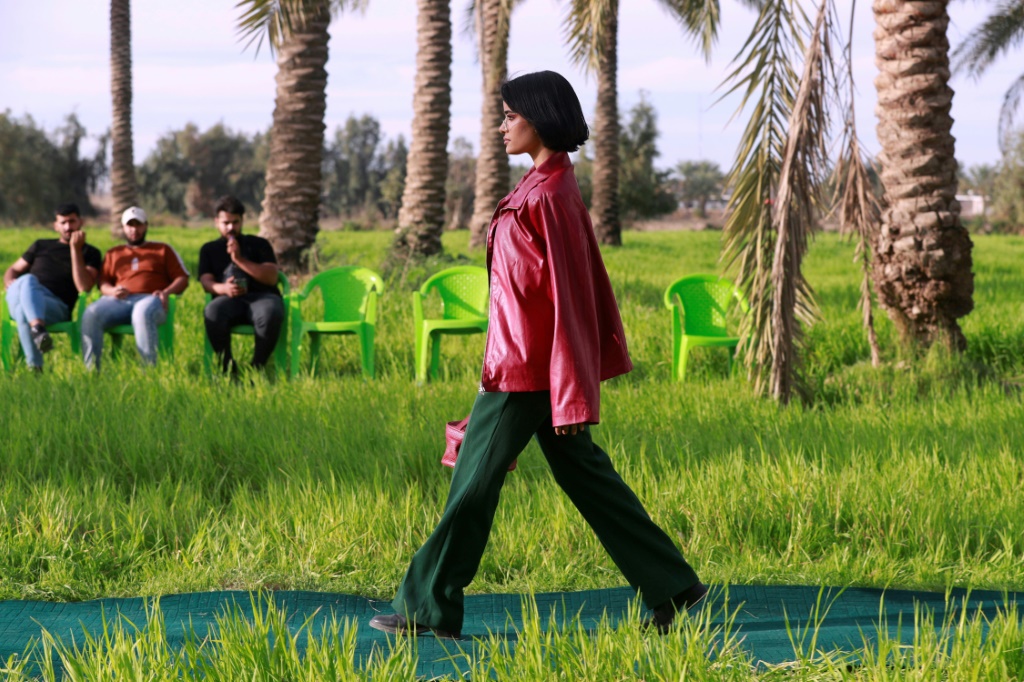 In a palm grove north of Baghdad, bemused Iraqi shepherds looked on as models paraded second-hand garments down an improvised catwalk, seeking to raise awareness of the fashion industry’s environmental impact.