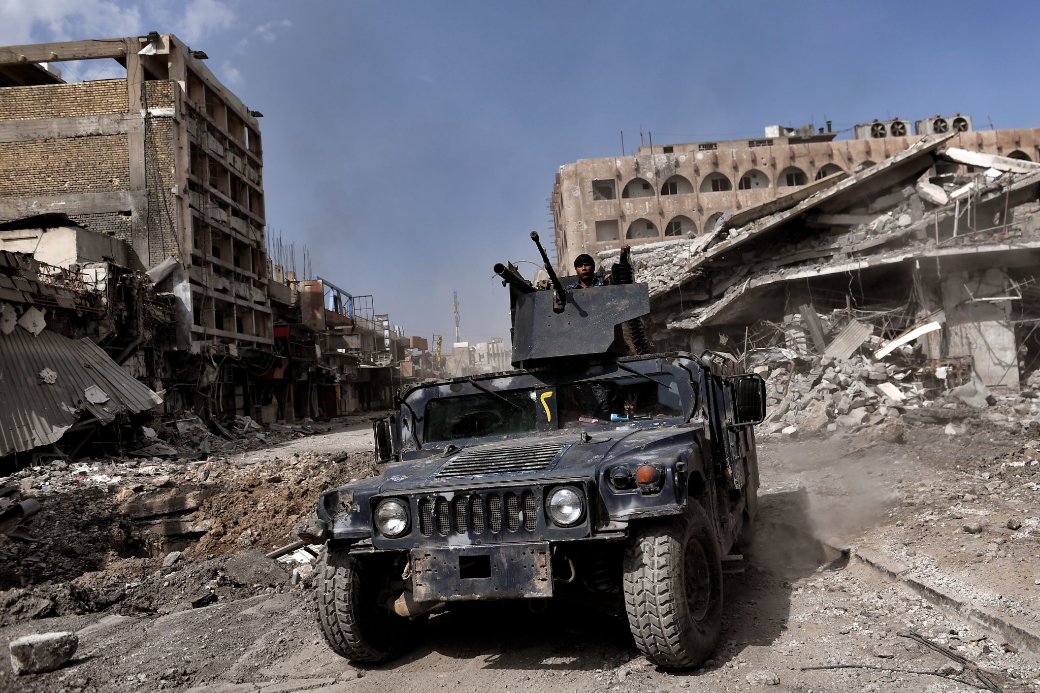 Supported by US-led air strikes, the forces have made steady progress in their battle to seize Iraq’s second city from the Islamic State group, announcing the recapture of two more areas. Hundreds of thousands of civilians are believed to still be trapped under jihadist rule in the Old City, where Abu Bakr al-Baghdadi proclaimed a “caliphate” in his only public appearance in July 2014. / AFP PHOTO / ARIS MESSINIS