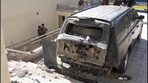 Photos issued by Kadhemi’s office showed debris strewn on the ground below a damaged exterior stairway and a door that had been dislodged.