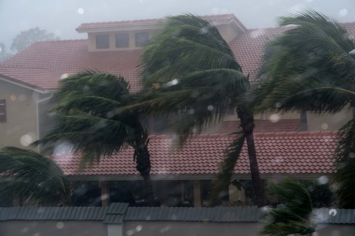 Palm trees blow in the winds of hurricane Irma in Bonita Springs, Florida, northeast of Naples, on September 10, 2017.