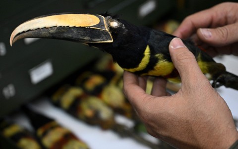 BOGOTÁ, March 8, 2024 (AFP) – Under a cracked and leaky ceiling, Andres Cuervo works on a colorful, dead hummingbird for the ornithological collection of the National University of Colombia, the country with more bird species than any other.