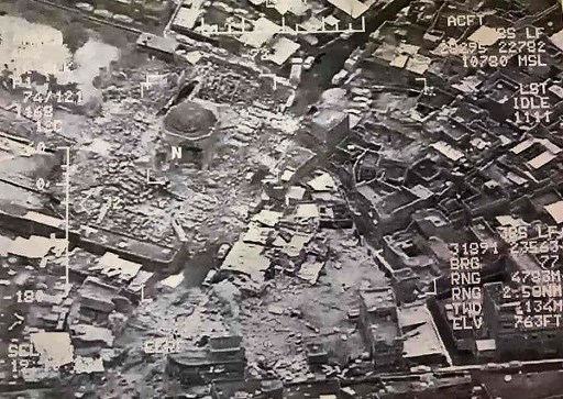 The Islamic State group swiftly issued a statement via its Amaq propaganda agency blaming a United States strike, but the US-led coalition condemned the destruction as a crime against “the people of Mosul and all of Iraq”.