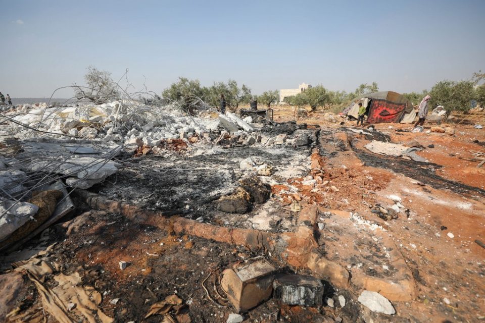 A picture taken on October 27, 2019 shows the site of helicopter gunfire which reportedly killed nine people near the northwestern Syrian village of Barisha in the Idlib province along the border with Turkey, where “groups linked to the Islamic State group” were present, according to a Britain-based war monitor with sources inside Syria. – The helicopters targeted a home and a car on the outskirts of Barisha, the Syrian Observatory for Human Rights said, after US media said IS leader Abu Bakr al-Baghdadi was believed to be dead following a US military raid in the same province. Observatory chief Rami Abdel Rahman said the helicopters likely belonged to the US-led military coalition that has been fighting the extremist group in Syria. (Photo by Omar HAJ KADOUR / AFP)
