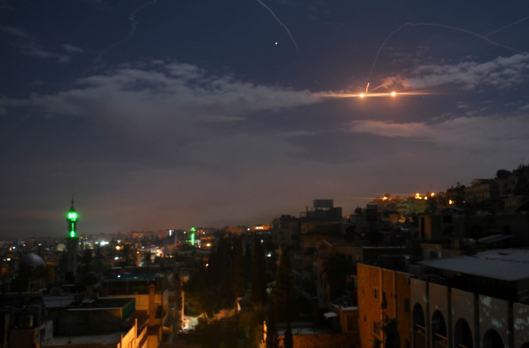 A picture taken early on January 21, 2019 shows Syrian air defence batteries responding to what the Syrian state media said were Israeli missiles targeting Damascus. – Israel struck what it said were Iranian targets in Syria today in response to rocket fire it blamed on Iran, sparking concerns of an escalation after a monitor reported 11 fighters killed. Israel openly claimed responsibility for the strikes against facilities it said belonged to the Iranian Revolutionary Guards’ Quds Force, continuing its recent practice of speaking more openly about such raids. (Photo by STR / AFP)