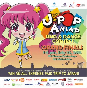 MANILA – The Japan Information and Culture Center (JICC) of the Embassy of Japan is inviting all J-Pop fans and enthusiasts to the 2015 J-Pop Anime Sing and Dance Contest Grand Finals on Saturday, July 25 from 1 to 5 pm at the SM CINEMA Centerstage, SM Mall of Asia, Pasay City. Free entrance to the public, with exhibit booths from our event partners.