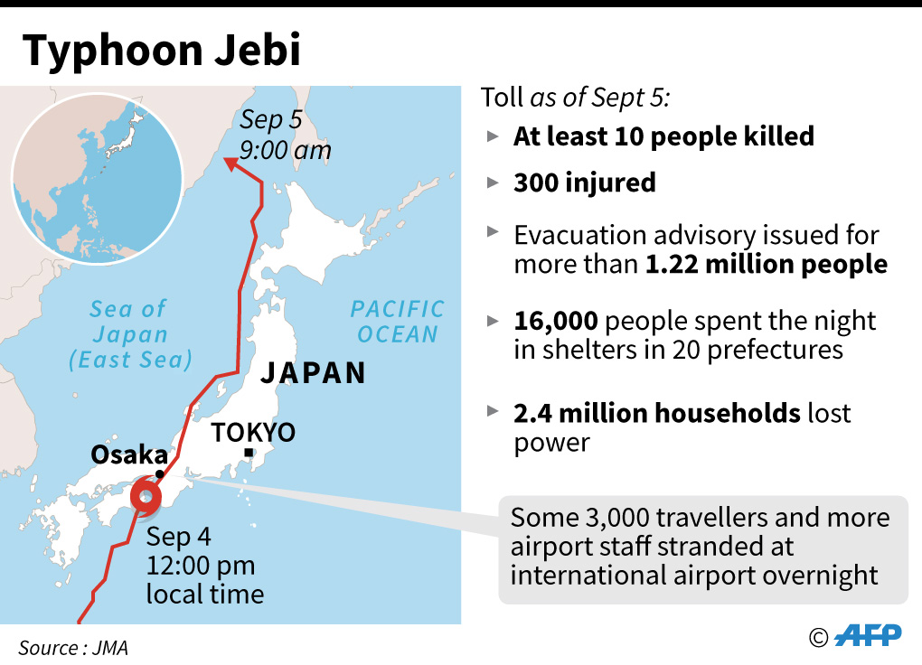 Jebi appears to have caused damage to the region’s infrastructure on an unusual scale.