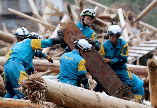 The death toll from heavy rains and flooding in southern Japan has risen to 25, a government official, as rescuers continued work to evacuate isolated survivors. / AFP /