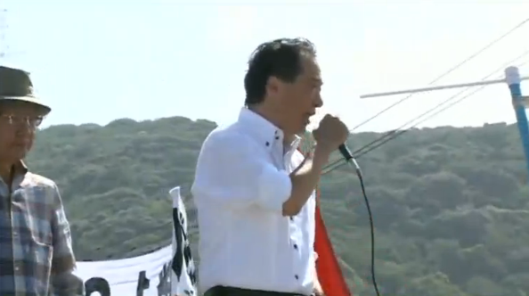 “Abe’s government is a government that will ruin the nation,” he shouted atop a van in front of the plant.