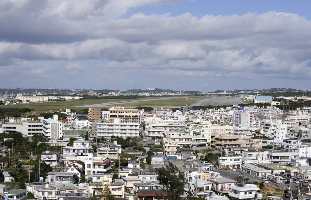 This general view taken on November 6, 2009 shows the US Marine Corps Futenma Air Base (top) in Ginowan, Okinawa Prefecture. Thousands were expected to rally on November 8, 2009 against the US military base on Japan’s Okinawa island, raising the heat in a simmering row days before President Barack Obama visits Tokyo. AFP PHOTO / Kazuhiro NOGI (Photo by Kazuhiro NOGI / AFP)