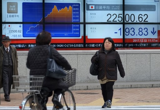 Tokyo stocks opened lower December 15 as fresh doubts about US tax cut plans outweighed a robust business confidence survey that showed firms at their most bullish for 11 years. / AFP PHOTO