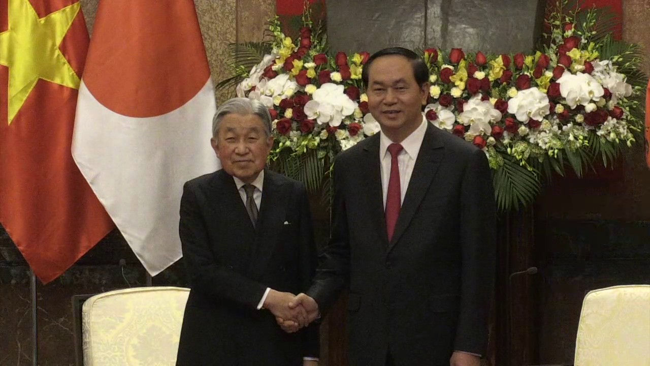 Japan’s emperor Akihito and empress Michiko meet Vietnamese President Tran Dai Quang on their first visit to the country, the latest in a series of trips to former World War II battlegrounds.