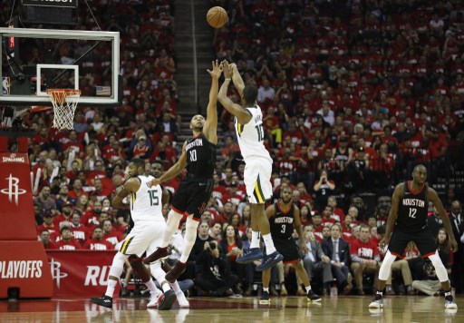 LOS ANGELES, United States (AFP) — The Utah Jazz started strong then held their nerve to beat the top-seeded Houston Rockets 116-108 on Wednesday and level their NBA playoffs second-round series at one game apiece.