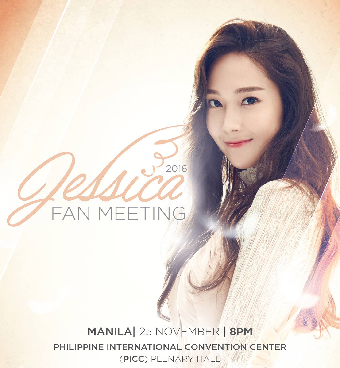 Fans of Korean American K-Pop sensation Jessica Jung will be glad to hear that she will be holding her first fan meeting in Manila on 25 November 2016 at Plenary Hall, Philippine International Convention Center (PICC).