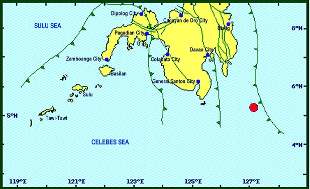 The Philippine Institute of Volcanology and Seismology said the quake hit 101 kilometers east of Sarangani at 7:34 a.m.