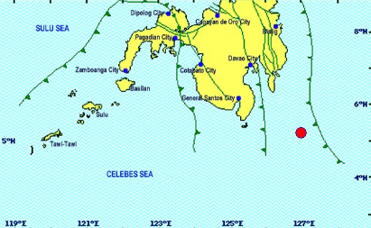 The Philippine Institute of Volcanology and Seismology said the quake, of tectonic origin, hit 169 kilometers southeast of Jose Abad Santos at 8:24 p.m.