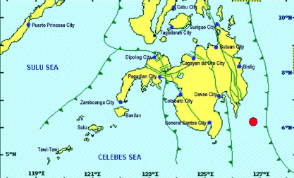 The Philippine Institute of Volcanology and Seismology said the quake hit 92 kilometers southeast of Governor Generoso at 6:12 p.m.