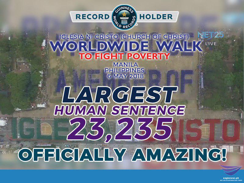 The INC’s newest feat was achieved on the same day it held its Church’s Worldwide Walk to Fight Poverty in more than 300 sites, including Manila, across 18 time zones.