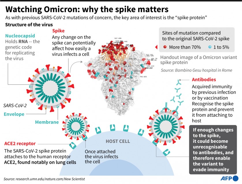 The Omicron variant has been found to have at least 30 amino acid mutations.