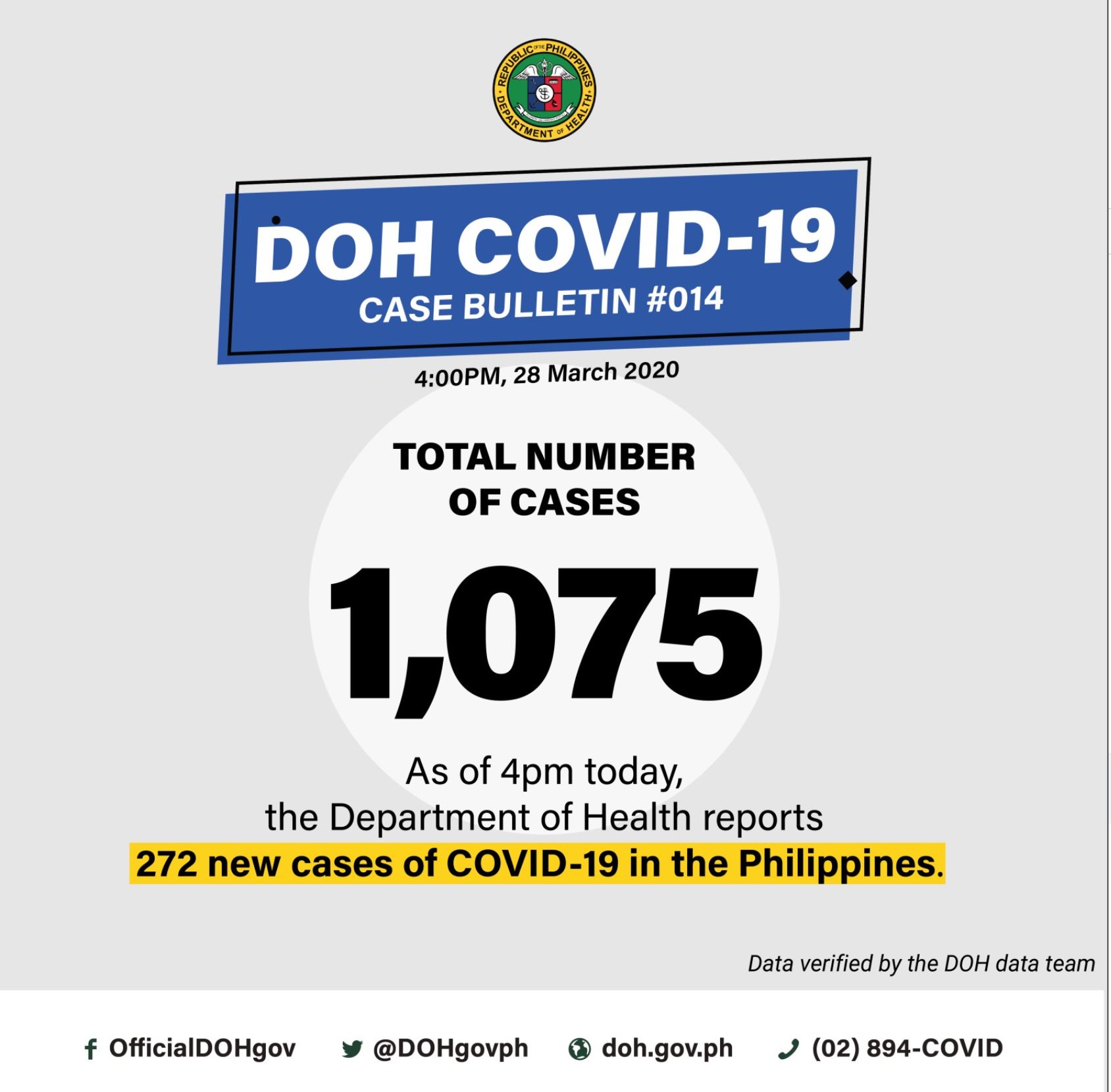 (Eagle News) — The Department of Health announced 272 new confirmed COVID-19 cases, bringing national total to 1075.