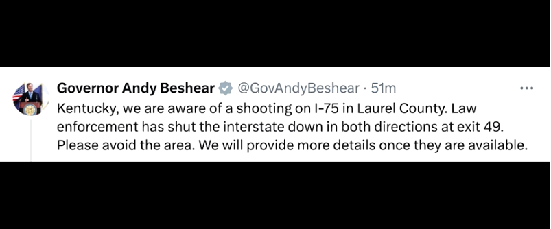 About three hours after the shooting, the Laurel County Sheriff’s Office named a “person of interest” who it said was “armed and dangerous” and cautioned the public not to approach the 32-year-old man.