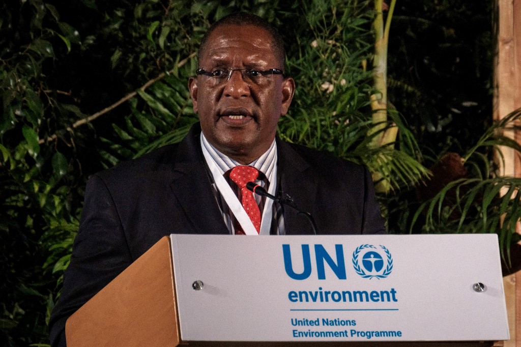 Keriako Tobiko, Kenya’s Minister of Environment and Forestry, speaks during the opening of the 4th UN Environment Assembly at the UN headquaters in Nairobi, Kenya, on March 11, 2019. (Photo by Yasuyoshi CHIBA / AFP)