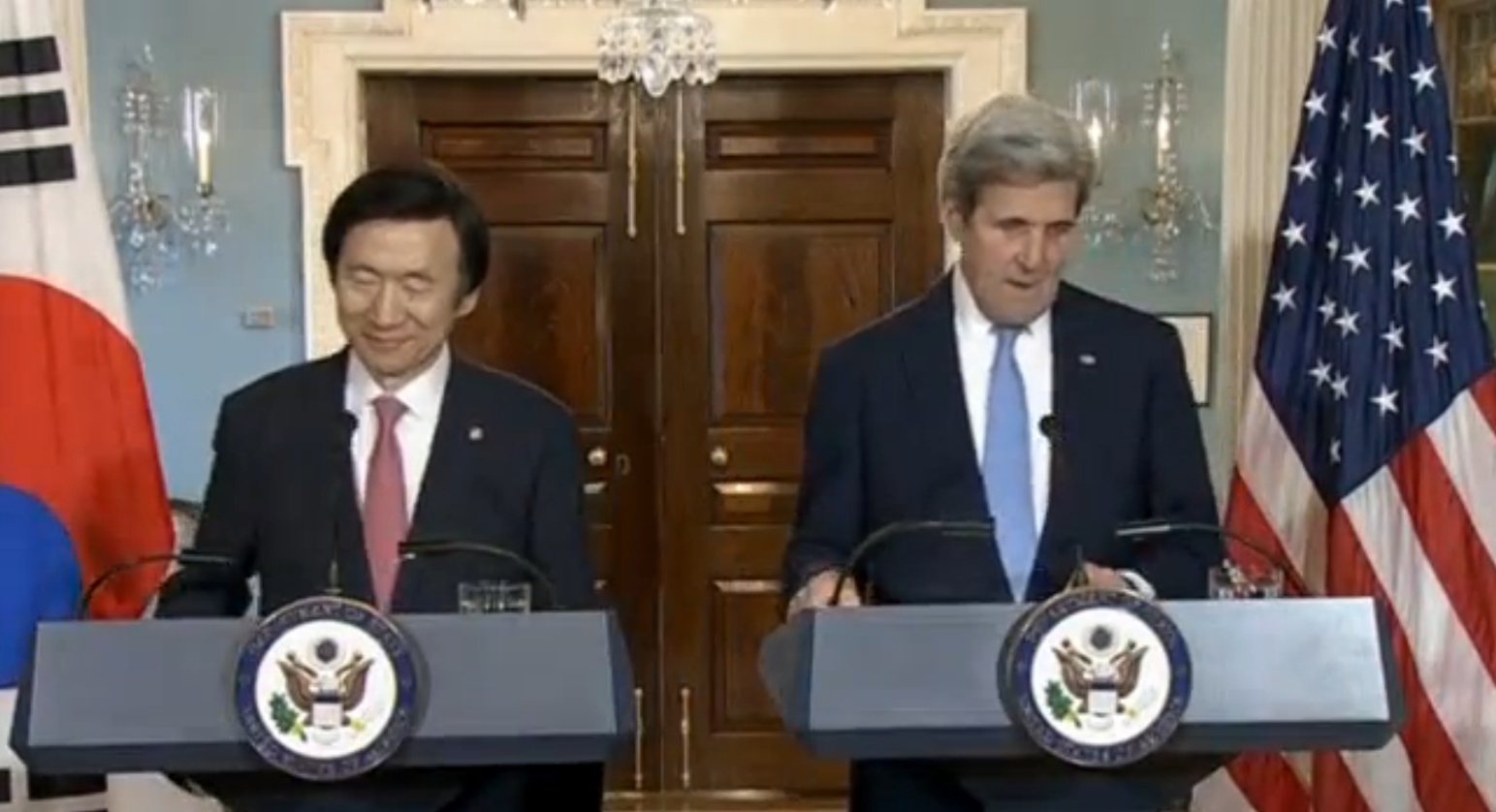 Kerry’s comments came as officials from the U.S, and North Korea began a series of talks on a variety of issues, but Kerry said the foremost one was “the provocative actions of North Korea.” He said the U.S. would defend South Korea “through extended deterrence, including the U.S. nuclear umbrella-conventional strike and missile defense capabilities.”