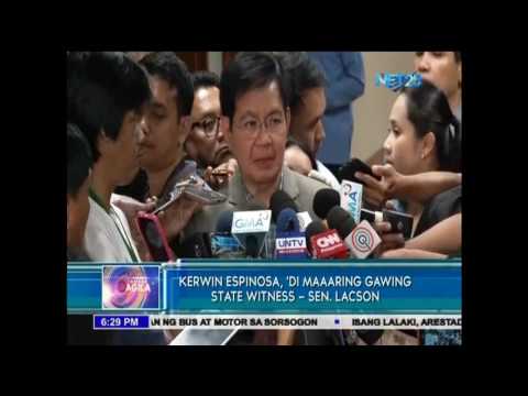Most guilty sa kaso si Kerwin Espinosa kaya hindi siya maaaring gawing state witness. Ito ang sinabi ni Senador Panfilo Lacson kahit pa nagbunyag si Kerwin kung sinu-sino ang kaniyang protektor sa illegal drug trade.