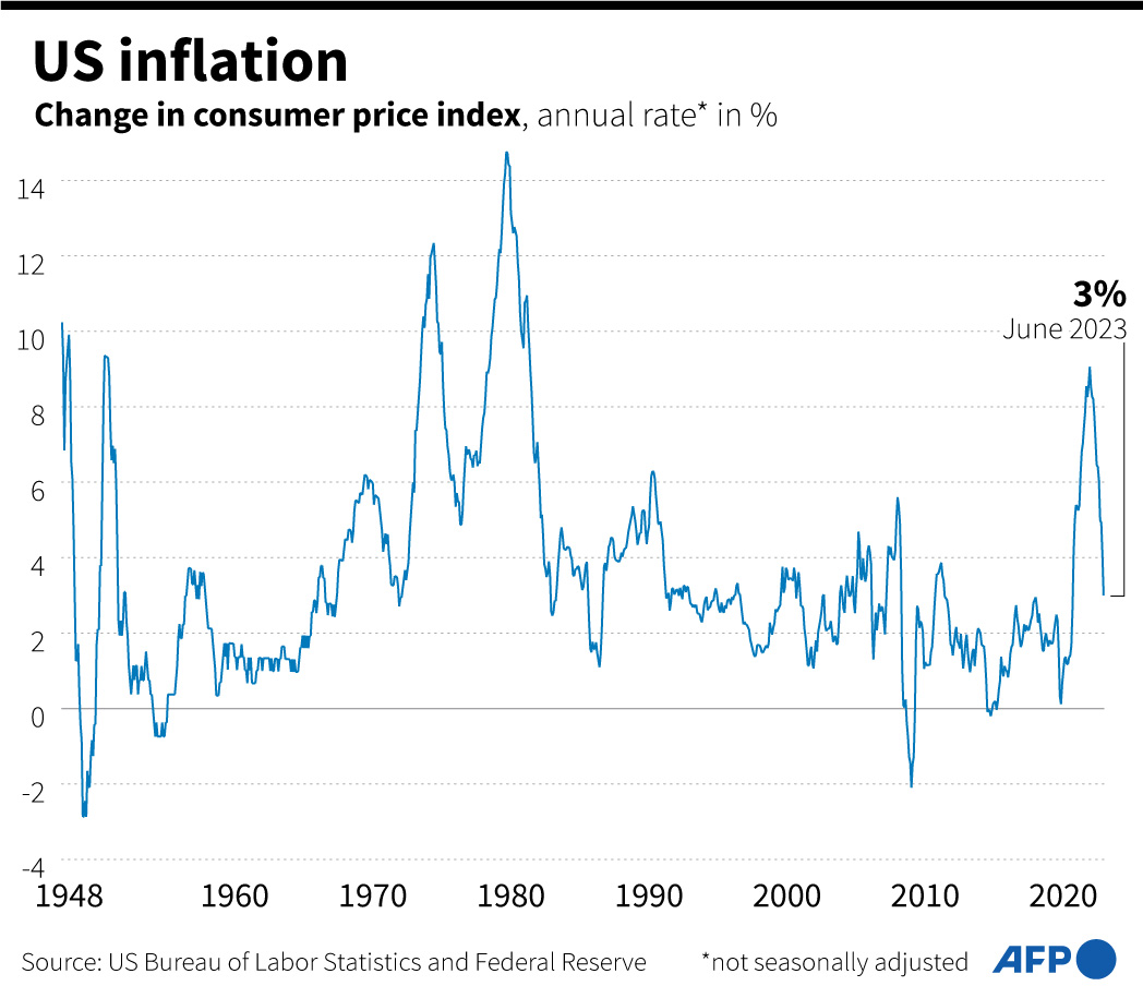 WASHINGTON, July 28, 2023 (AFP) – WASHINGTON, July 28, 2023 (AFP) – A key indicator of US inflation cooled in June to the lowest annual rate in over two years, although this remains above the central bank’s target, according to government data released Friday.