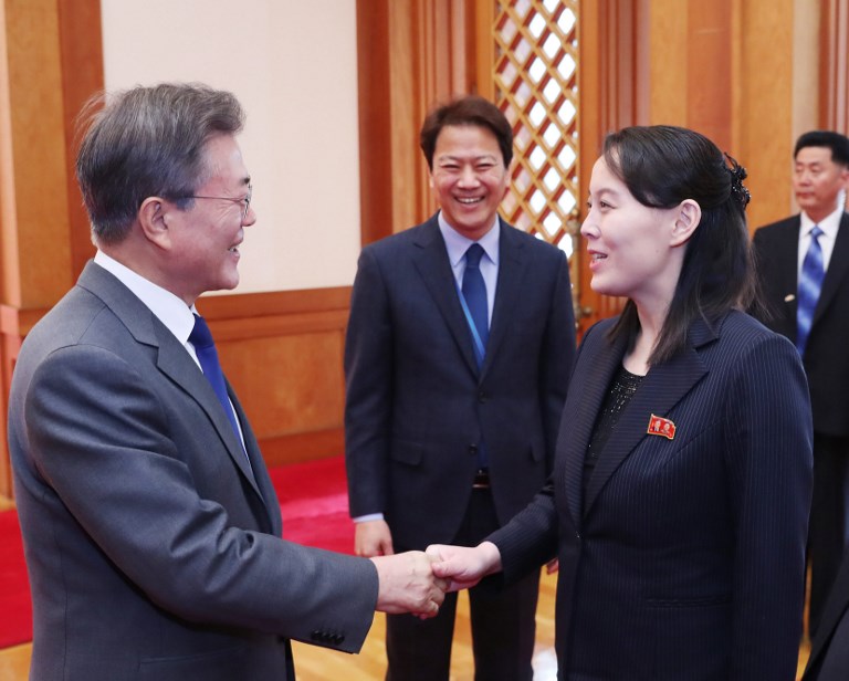 Moon met Kim Yo Jong and the North’s ceremonial head of state Kim Yong Nam for talks and lunch at the Blue House on Saturday.