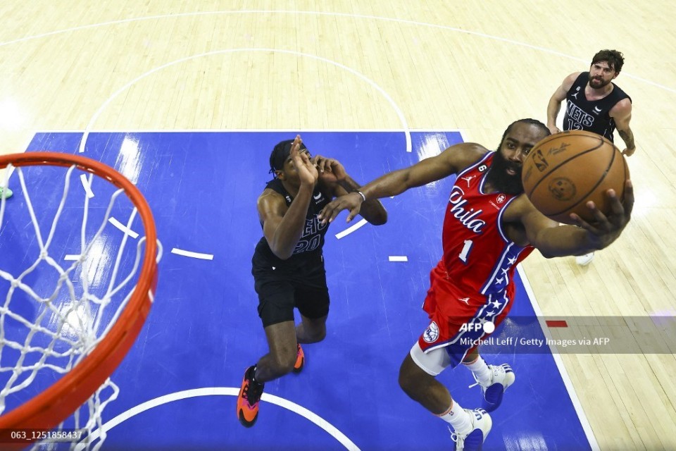 NBA scoring champion Joel Embiid had 26 points while NBA assists champion James Harden added 23 points and 13 assists in the Sixers’ romp.